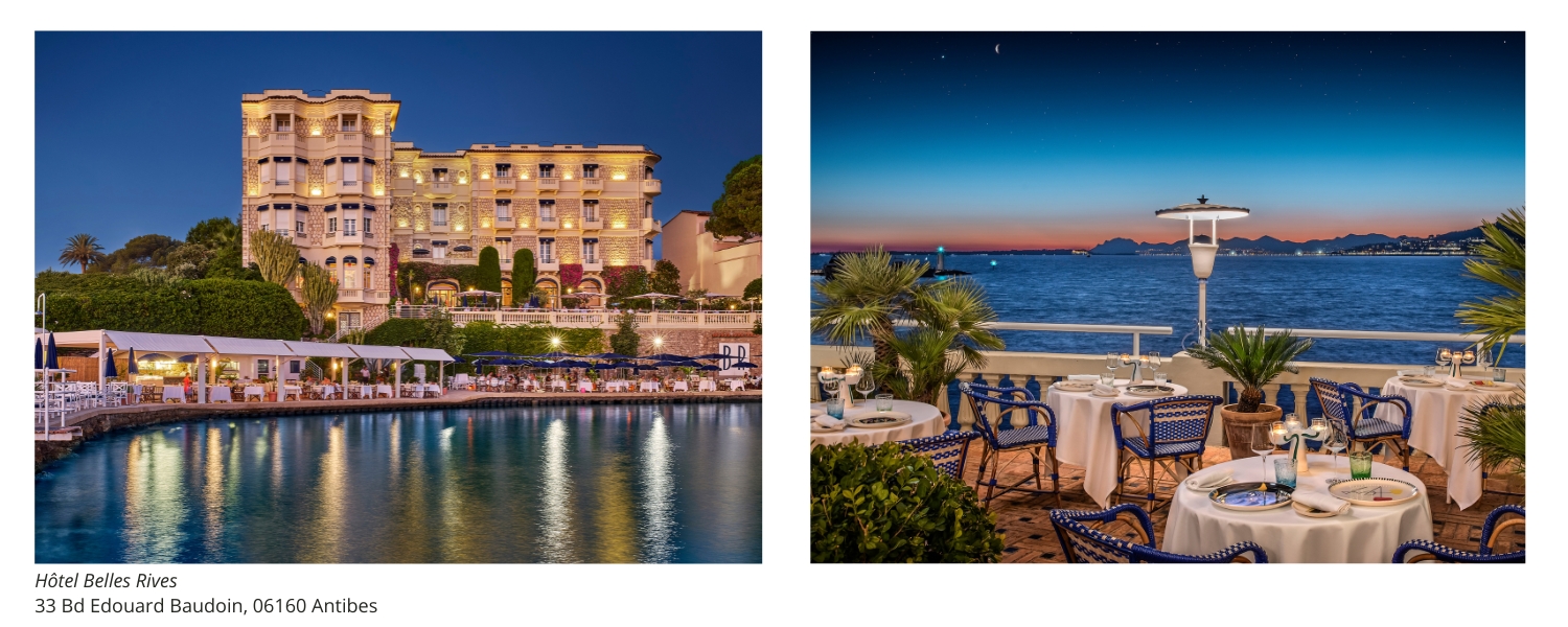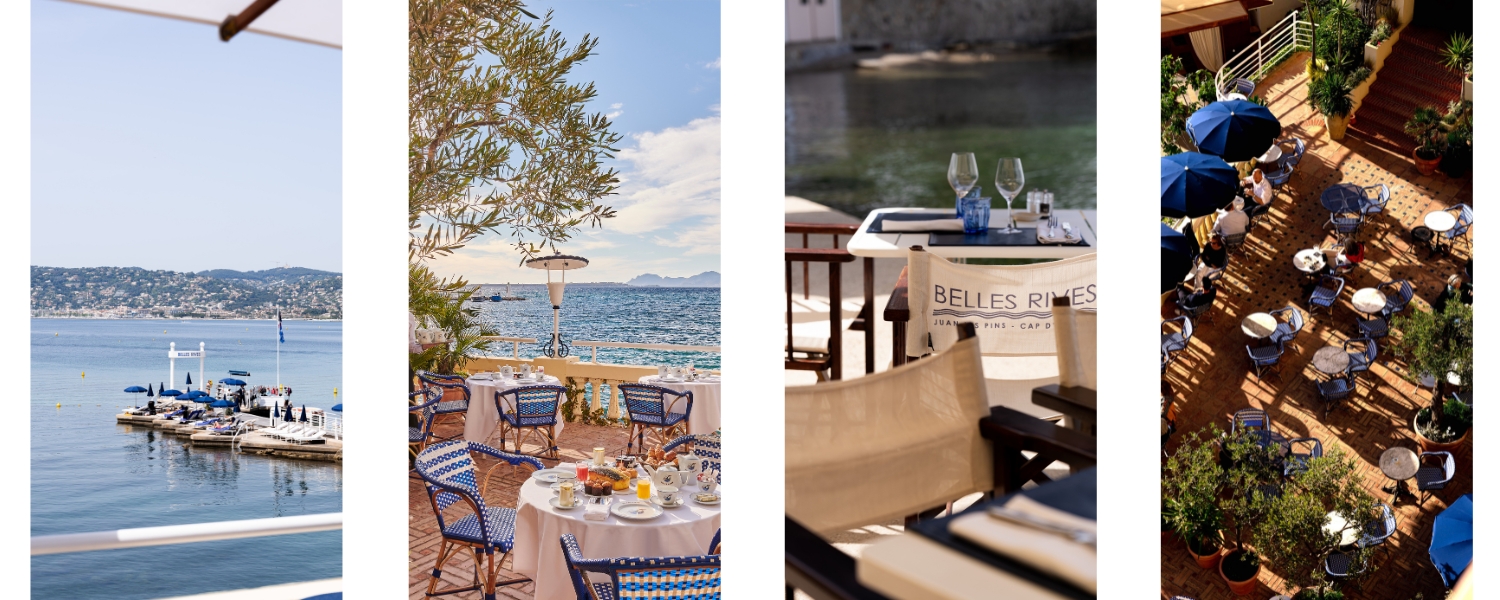 A stay at the Hôtel Belles Rives. Breakfast overlooking the horizon, where the Mediterranean blends into the sky. Arriving by boat at Belles Rives Beach, followed by a wellness session at the Beauty Corner. A summer evening at La Passagère, where jazz notes gently rise above the water inside the Fitzgerald Bar.