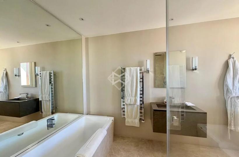 The other area features a front-facing master suite with terrace access, a large walk-in dressing room, and a spacious en-suite bathroom with bathtub, shower, and toilet. Two additional en-suite bedrooms, each with their own bathrooms, as well as an office which can easily be converted into an additional bedroom—complete this space.