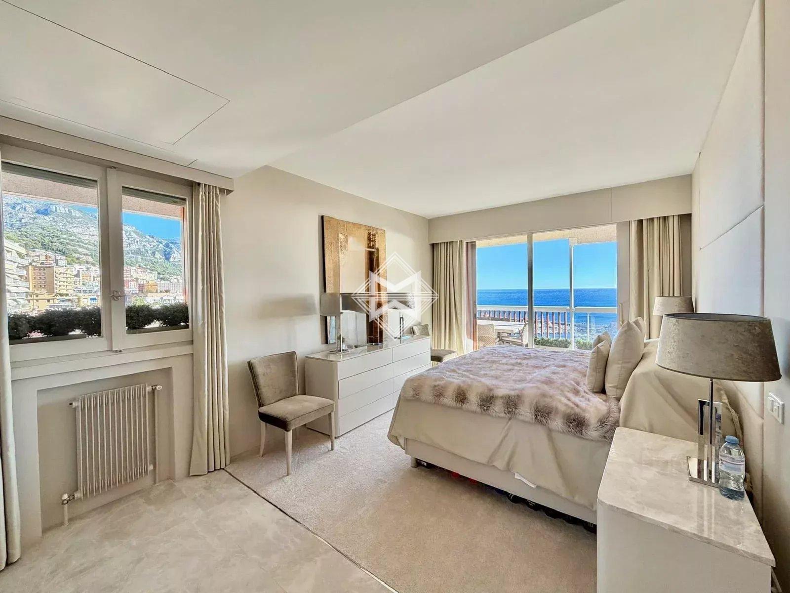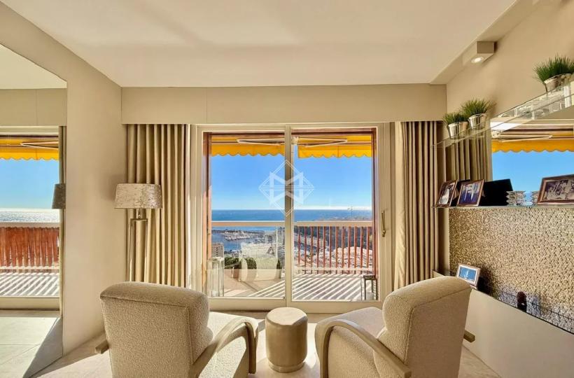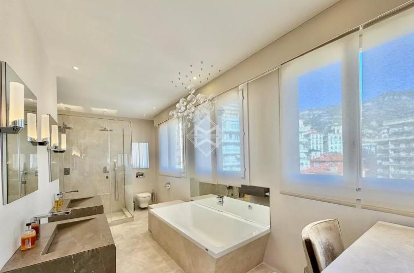 Occupying a half-floor and the only apartment on its landing, this bright and spacious property benefits from a triple exposure (East, South, and West), offering breathtaking panoramic views over the Mediterranean Sea, the Rock of Monaco, the Italian coastline, as well as the city and surrounding hills.