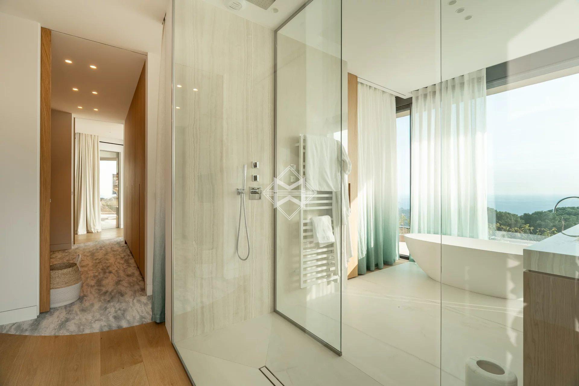 Set within a private gated estate on the waterfront, this brand-new 400m² contemporary villa stands as an absolute benchmark of luxury on the French Riviera. South-facing and flooded with natural light, it unfolds across generous volumes beneath soaring ceilings, offering unobstructed panoramic sea views from every living space.