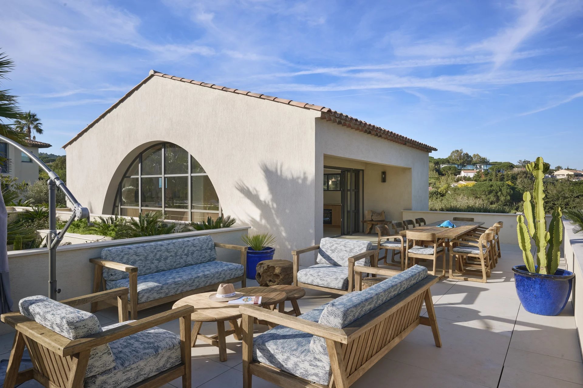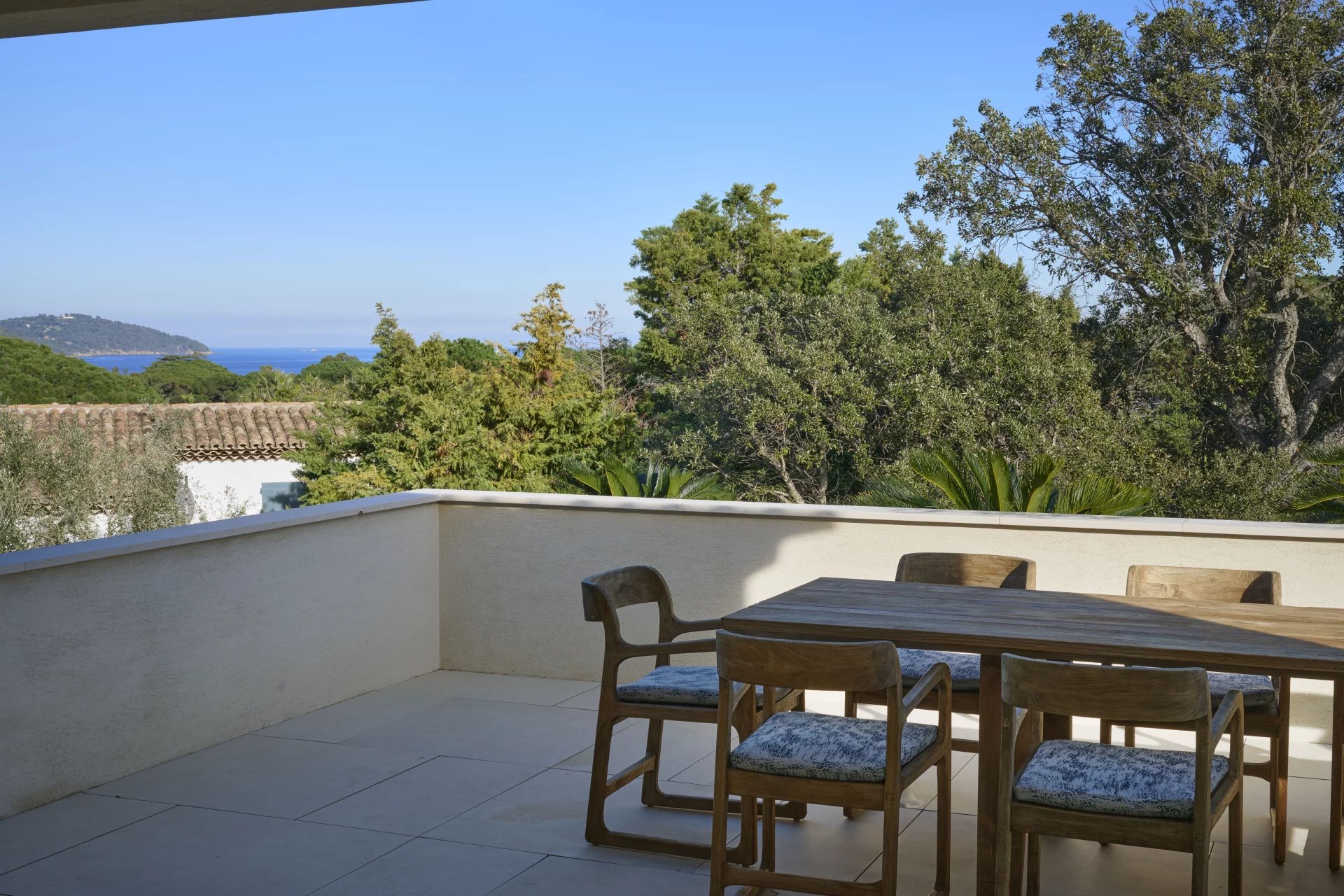 The South-facing property, of a living surface of approx. 200m², is composed, in particular, of a beautiful living area with open kitchen extended by a large wooden terrace, and 5 bedrooms.