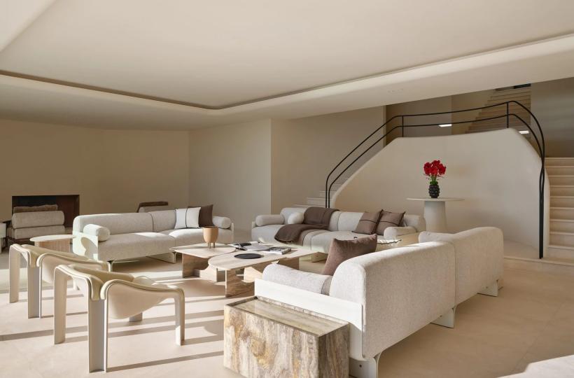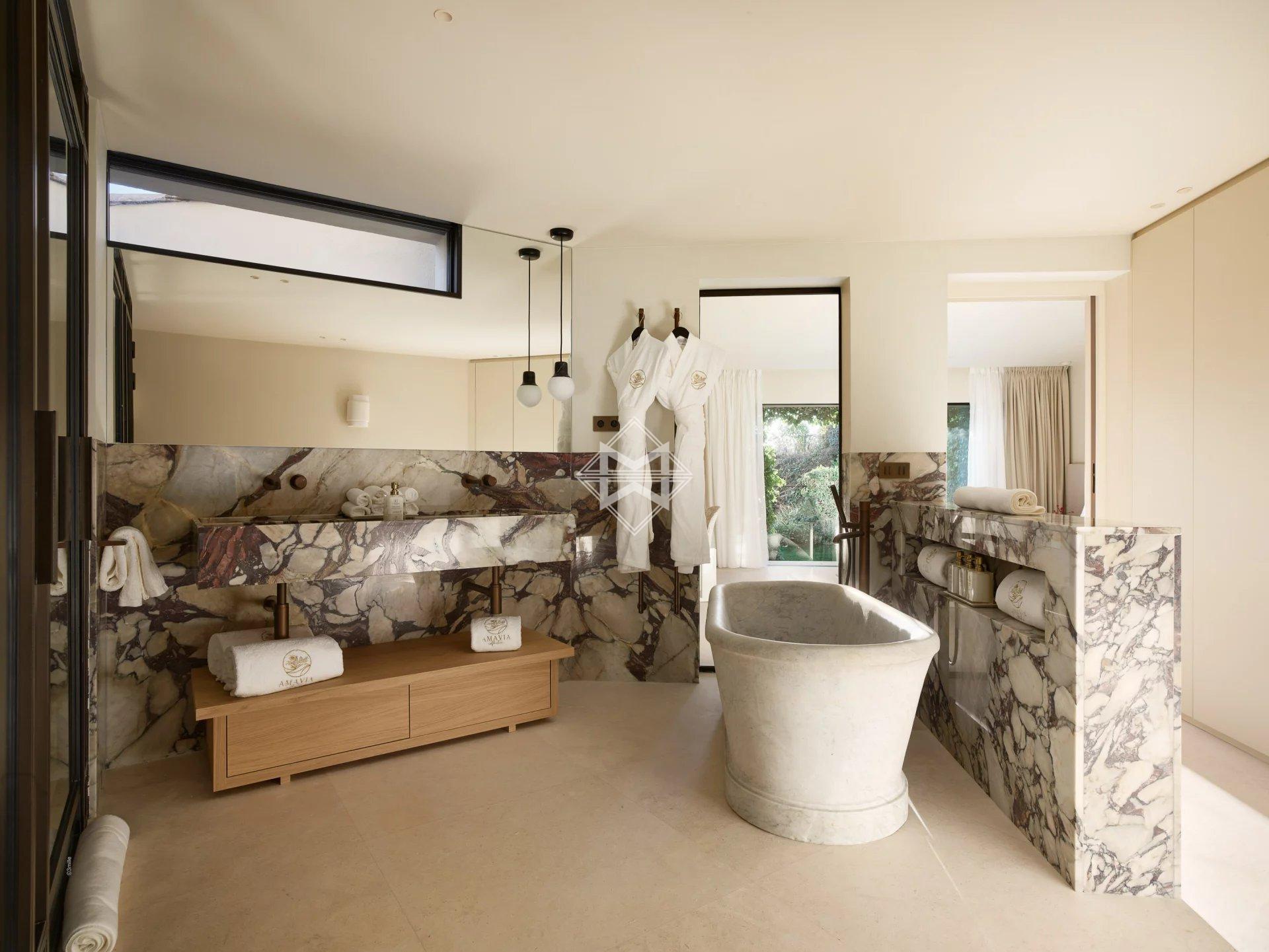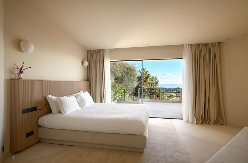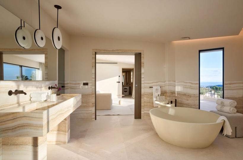 The villa features six spacious en-suite bedrooms, each opening onto a private balcony or terrace with sea views. Bathed in natural light, the expansive reception areas flow seamlessly onto vast terraces, creating an elegant setting for both relaxation and entertaining.
