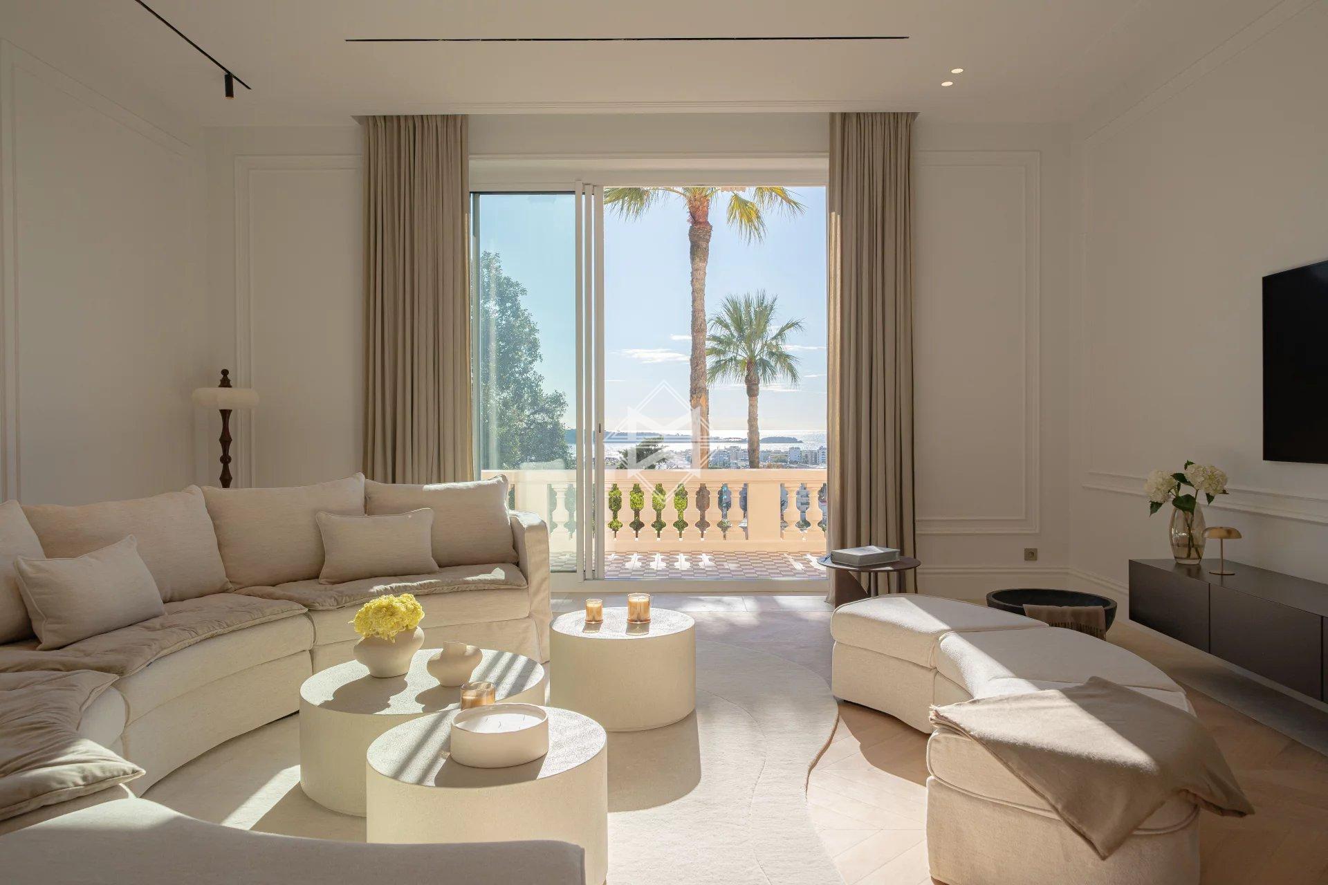 Exceptional apartment located in a former historic hotel in Cannes, within a prestigious residence featuring a beautifully landscaped park with palm trees and exotic plants.
