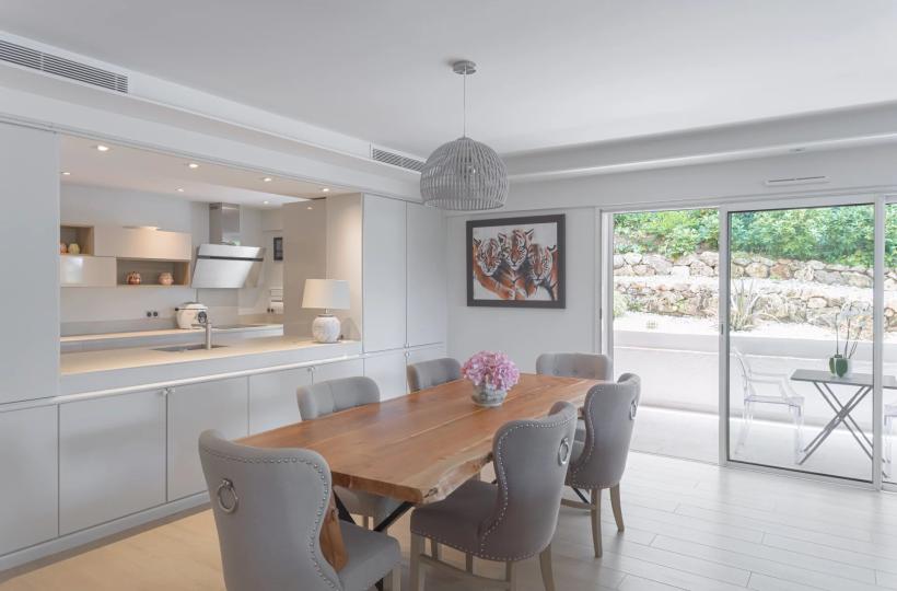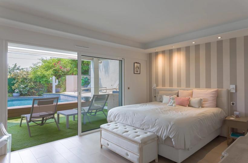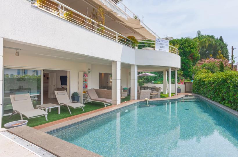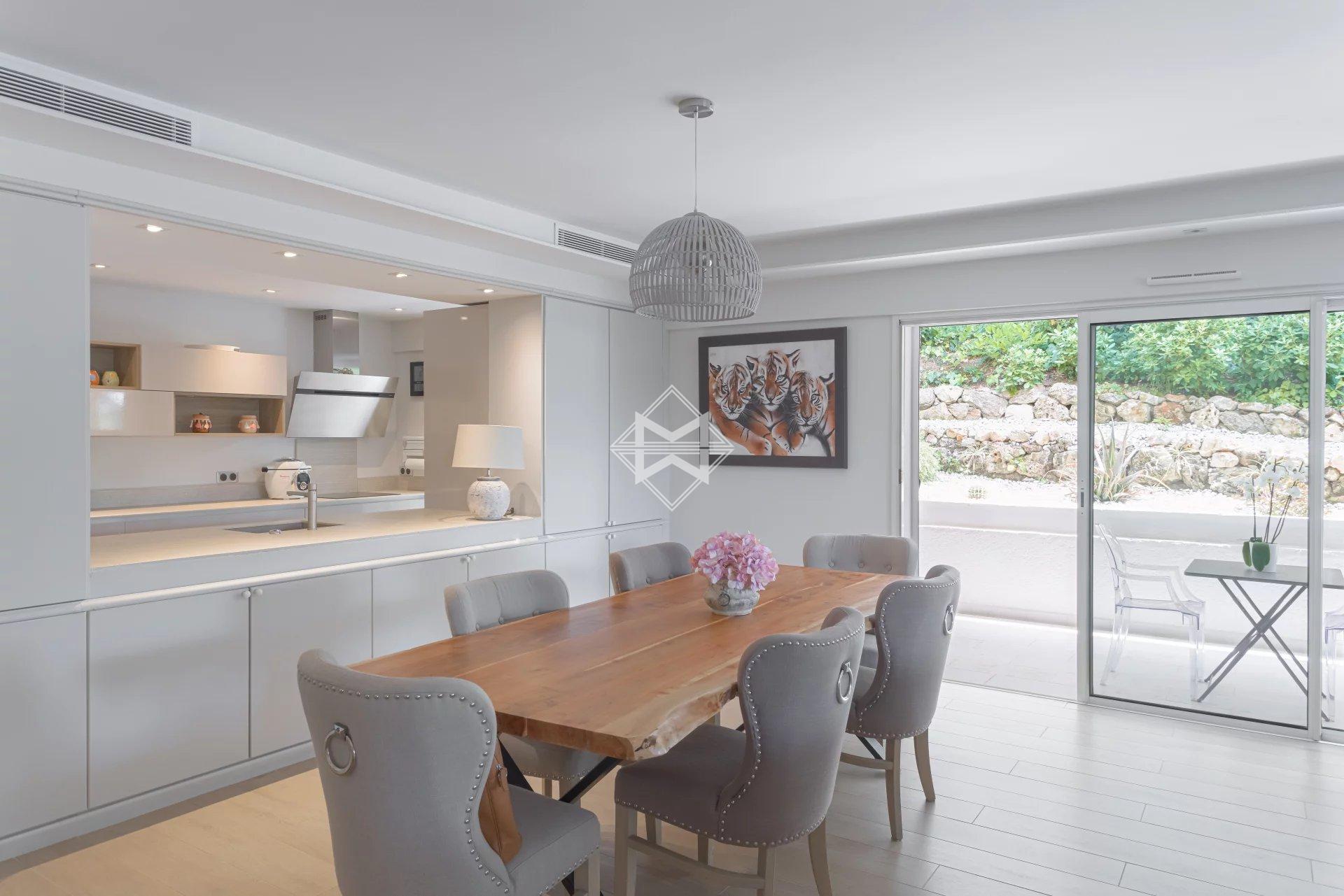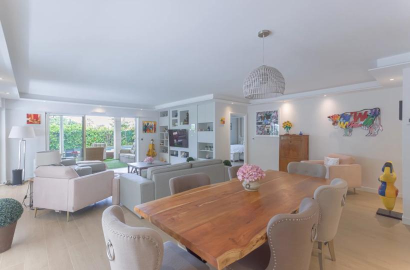 Located in the residential and green suburb of Cannes, La Californie, near the city center and the Parc Montfleury sports complex, this magnificent apartment, completely renovated, on the ground floor benefits from a private swimming pool.