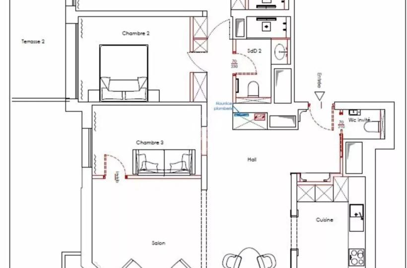 The sleeping area consists of three bedrooms, including a master suite, each boasting beautiful proportions and a serene atmosphere. Two bathrooms, a shower room, and a guest toilet ensure comfort for the whole family.