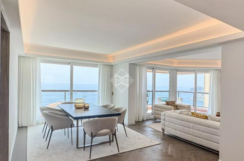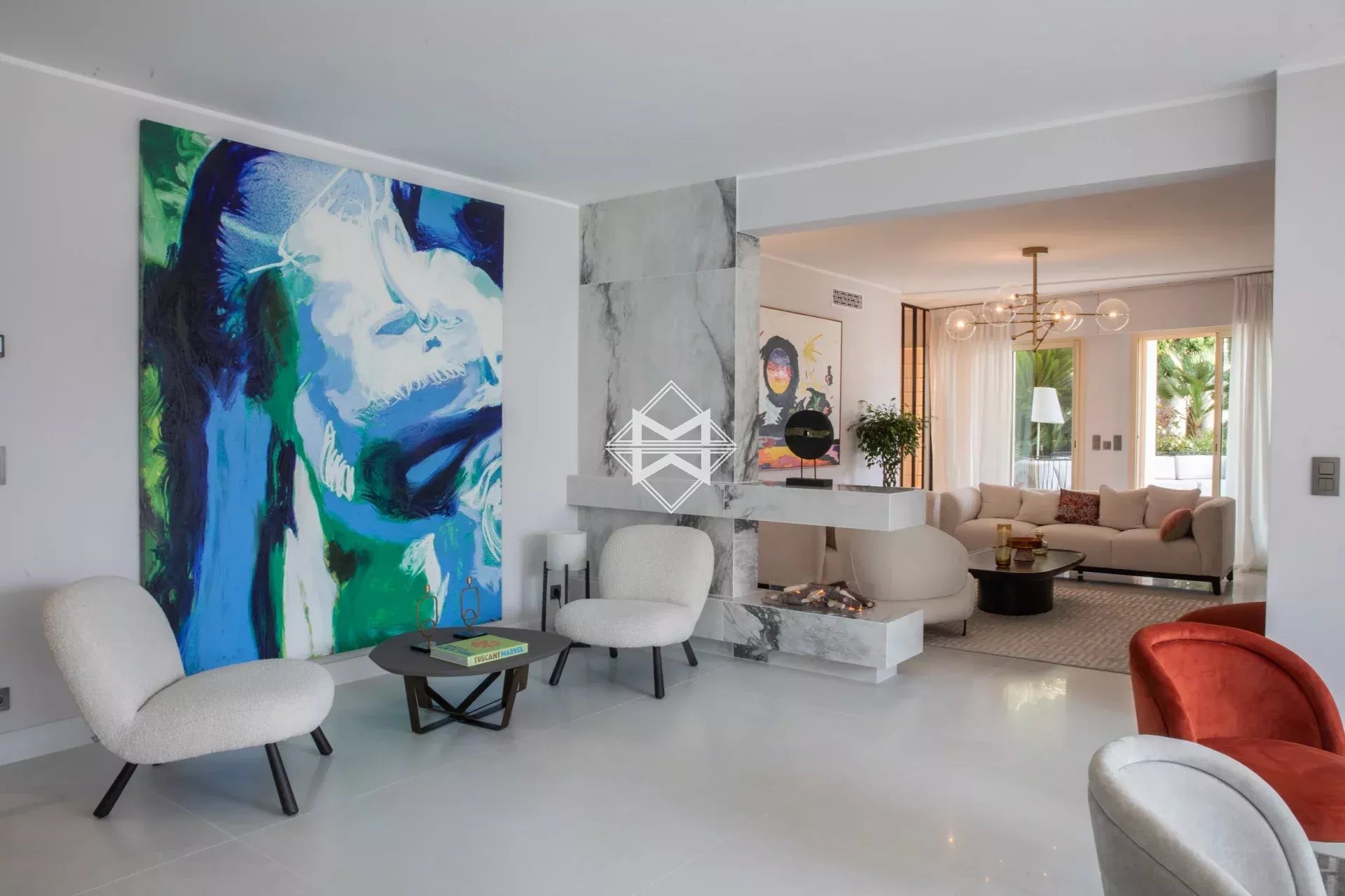 In a luxury residence with 24-hour concierge, a swimming pool, and a summer restaurant, this magnificent family apartment enjoys a peaceful setting between the sea and the greenery.