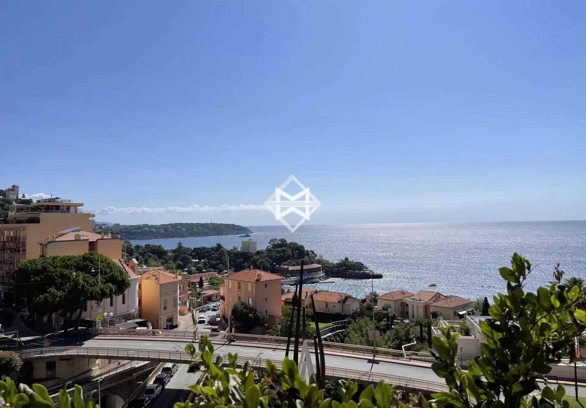 Apartment in a luxury residence with concierge, two rooms completely renovated with quality materials, view of the sea and the Monte-Carlo beach hotel.