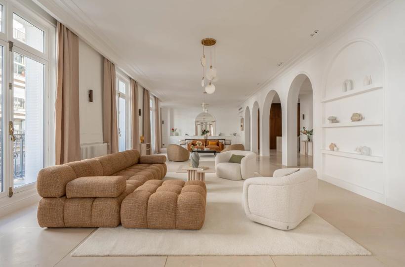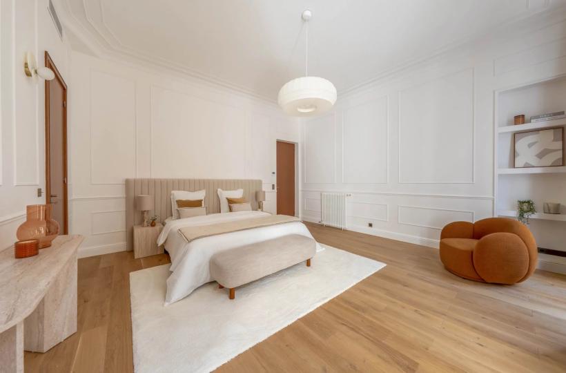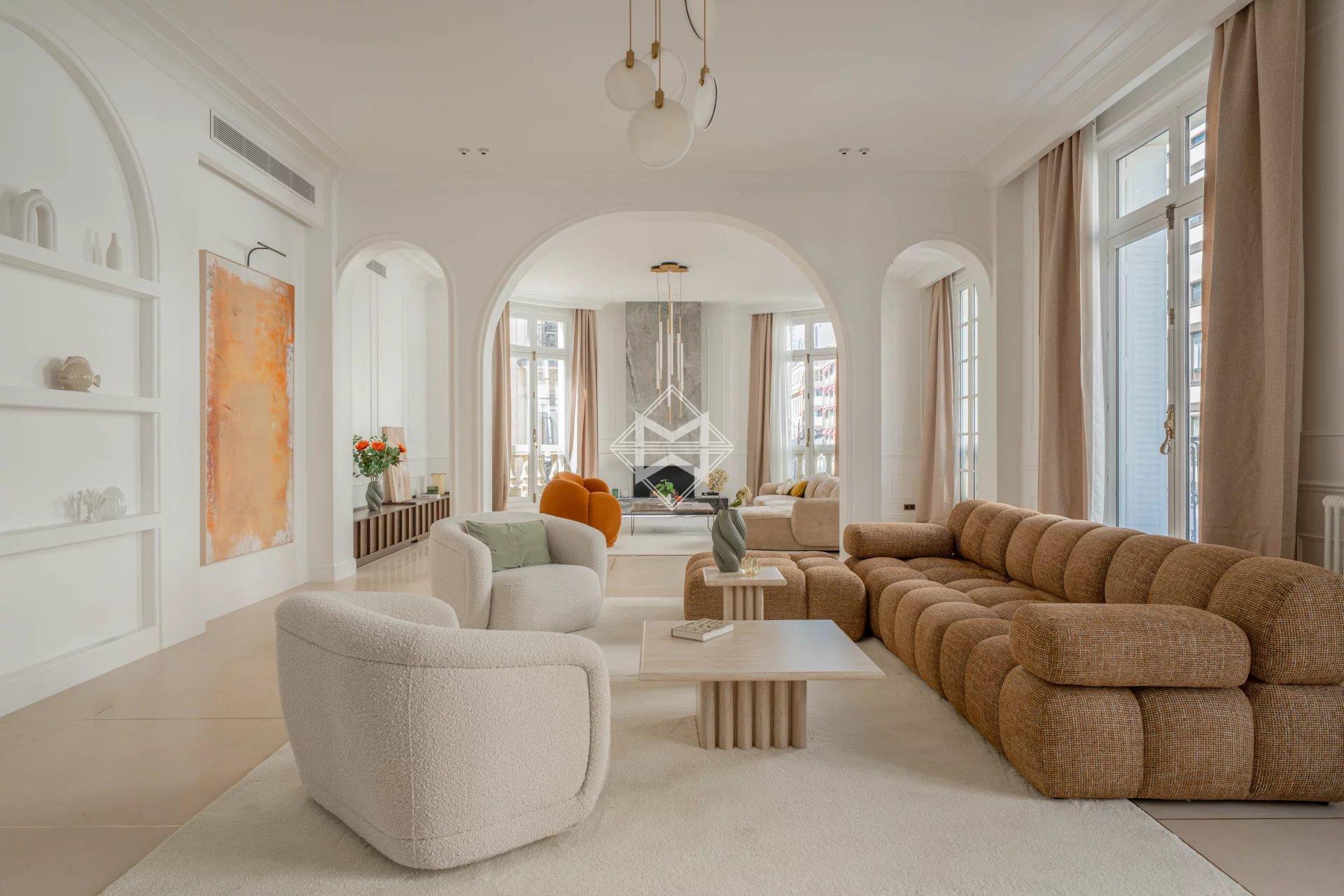 Located on the noble floor, this reception apartment has undergone a complete renovation, highlighting exceptional volumes.
