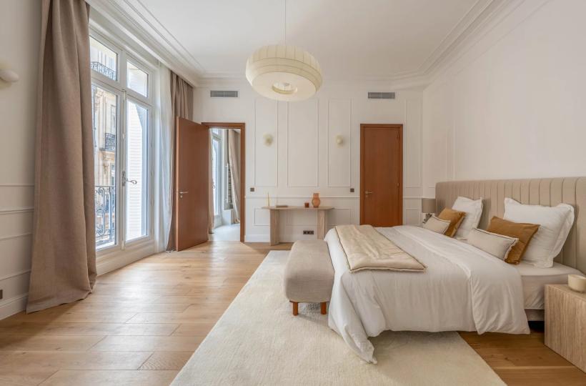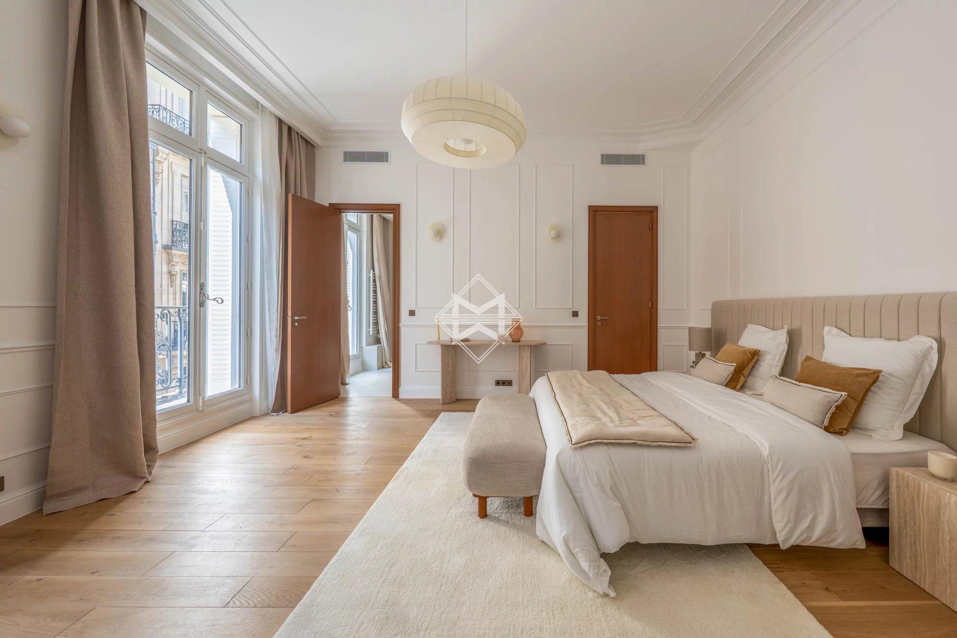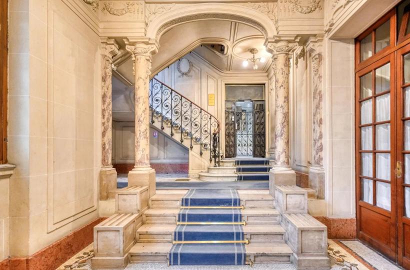 Paris 8th — A stone's throw from the Champs-Élysées, in the heart of the iconic Golden Triangle environment, in one of the most sought-after areas of the 8th arrondissement, this apartment is located within a remarkable 19th-century stone corner building, with notable communal areas.