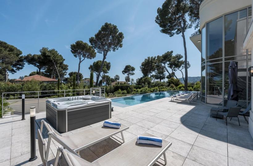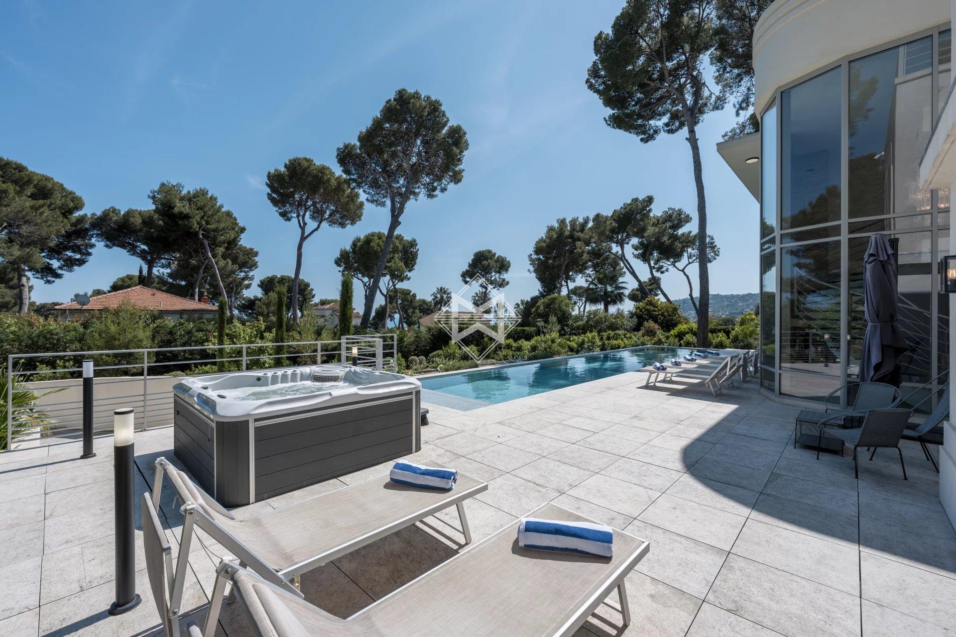 Ideally located in the highly sought-after area of Antibes , in a quiet and exclusive residential setting close to the beaches and the coastline, this elegant contemporary villa offers an exceptional lifestyle. Built in 2022, the property provides approximately 416 sqm of living space, set on a beautifully landscaped 1,853 sqm south-facing plot.