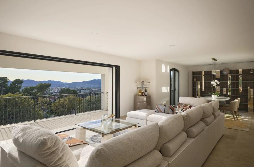 Set on the hills of Le Cannet, at the end of a secure and private cul-de-sac, this contemporary villa of approximately 280 sqm enjoys a peaceful green setting, complete privacy and pleasant sea glimpses. The property has been fully renovated using high-quality materials and refined finishes.