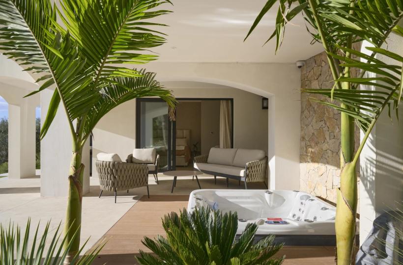Built on a beautifully landscaped plot of around 2,700 sqm, the villa offers bright and generous living spaces. The main level features a spacious living and dining area, a fully equipped kitchen, and a master suite with both shower and bathtub, all benefiting from a south-west facing exposure and total tranquility.