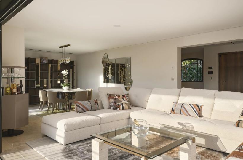 On the garden level, four en-suite bedrooms, a laundry room, and a large 40 sqm room with independent access—ideal for a gym or home cinema—complete the layout. A sauna enhances the wellness facilities.