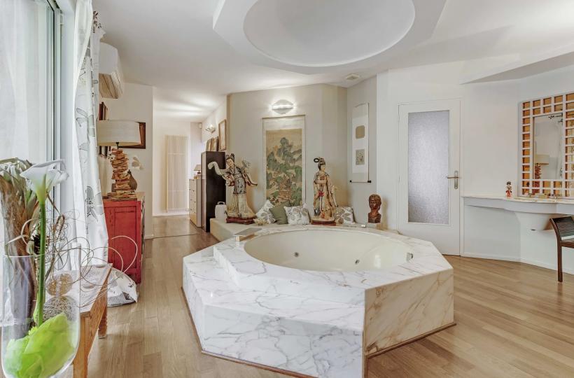 A true haven of greenery, the landscaped park—shaped by decades of passion—features lush and refined vegetation. Mediterranean essences, exotic plants, ponds, koi carp, and small lakes compose a natural tableau of rare beauty, enhanced at nightfall by exceptional lighting.