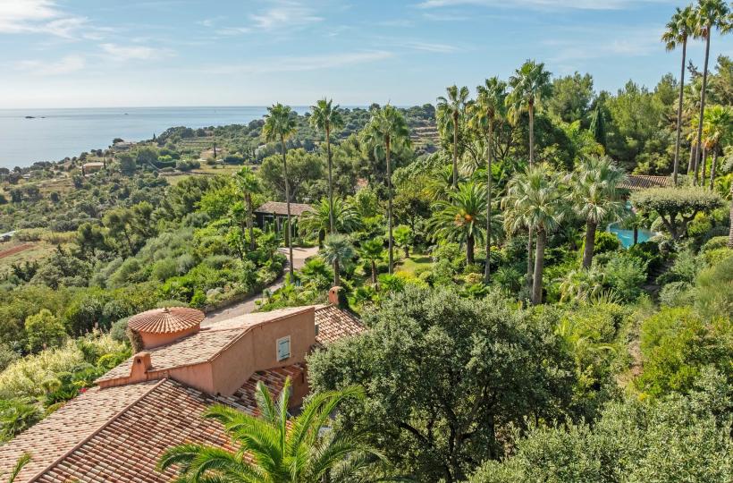 Outdoors, the property invites relaxation and conviviality: a heated pool surrounded by rare species, an elegant pool house, sunbathing areas, and sweeping views over the deep blue sea.