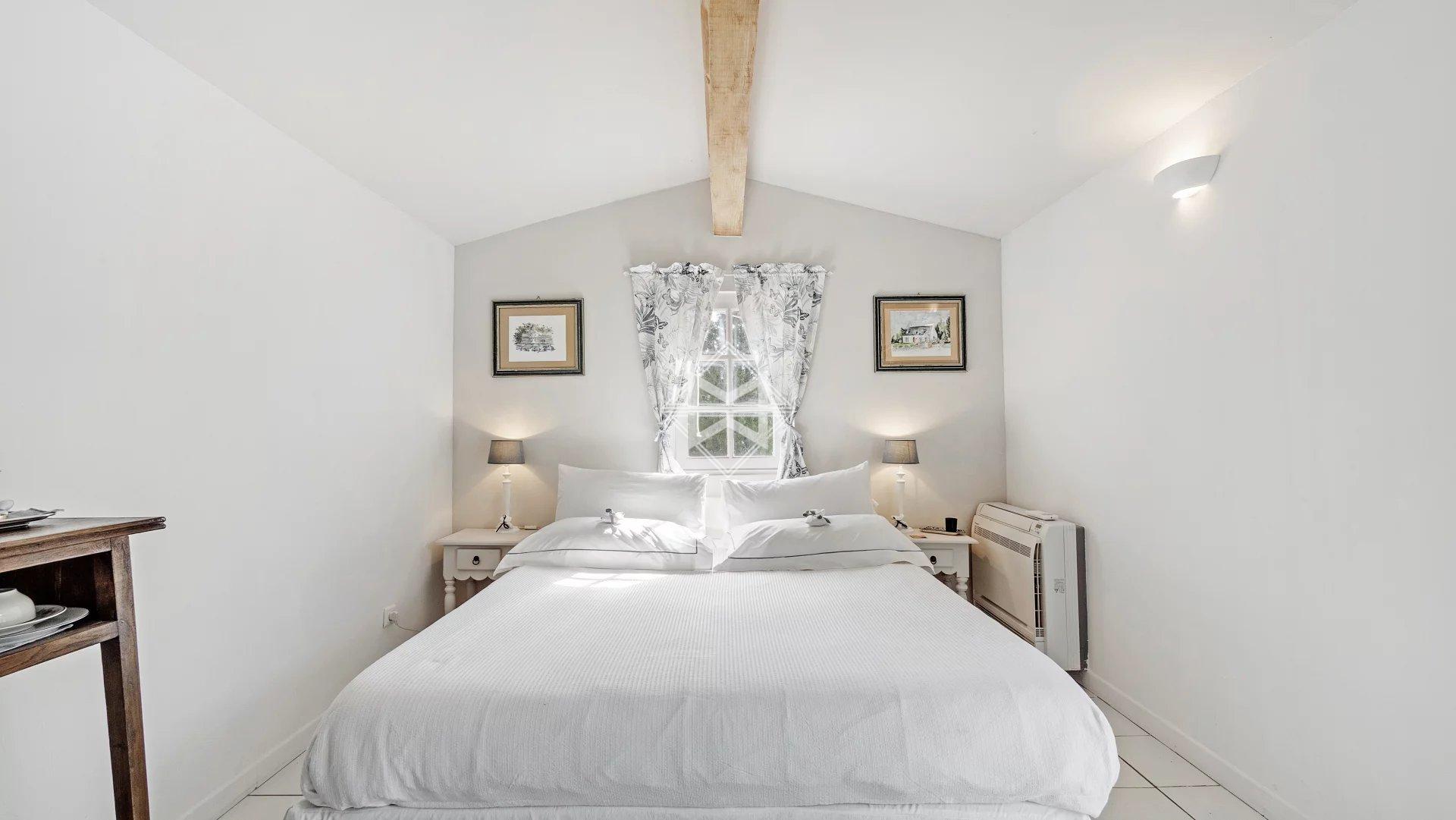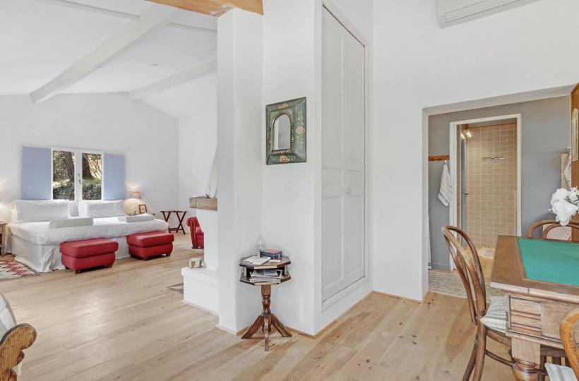 Nestled on a beautifully landscaped plot of over one hectare, adorned with olive and century-old oak trees, the property is completed by a heated swimming pool, perfect for year-round relaxation.