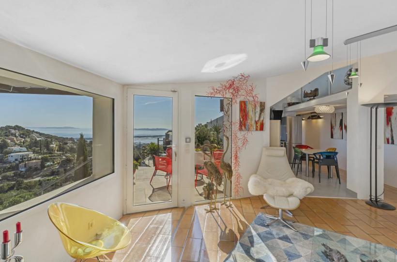 On the top of Mont des Oiseaux, in the heart of a sought-after residential estate in Hyères, this architect-designed villa of approximately 120 m² sits on a 1,500 m² plot, secluded and utterly peaceful.