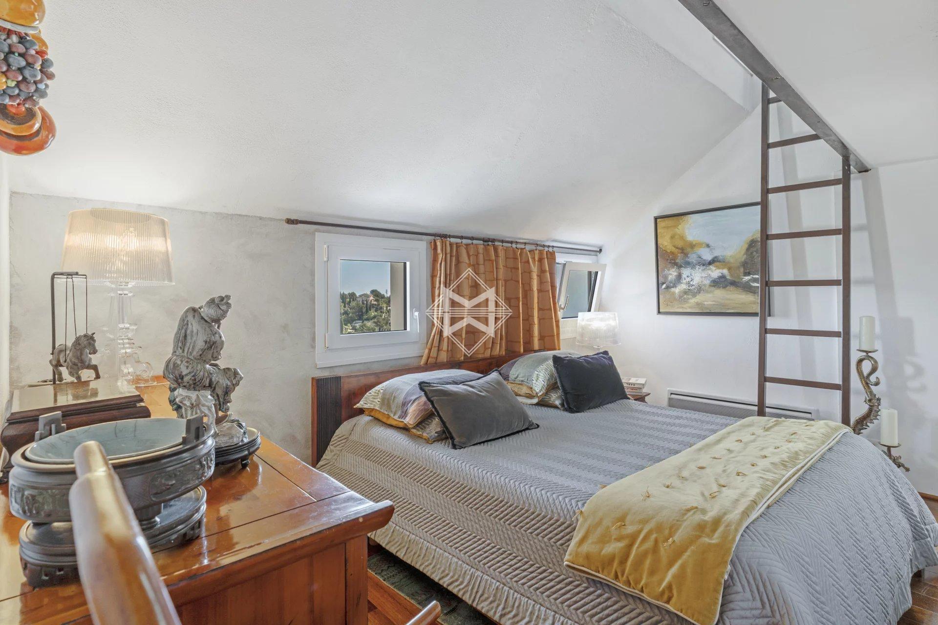 Two bedrooms with mezzanines, a shower room, a bathroom, and an independent studio of around 18 m² complete the villa with both discretion and functionality.