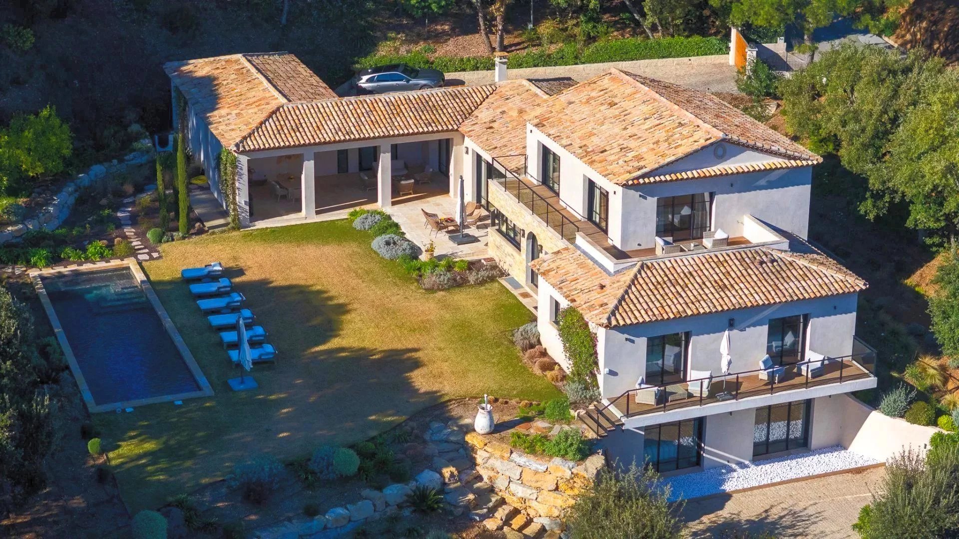 Built in 2014 by a renowned architect, the property offers 340 sqm of living space in perfect harmony with its natural 7,000 sqm plot. The generous yet intimate volumes have been designed to combine modernity, ecology, comfort, and authenticity. In absolute tranquility, with no overlooking neighbors, a heated 14 x 4 m saltwater infinity pool and its fully equipped pool house create a relaxing and refreshing haven of peace.