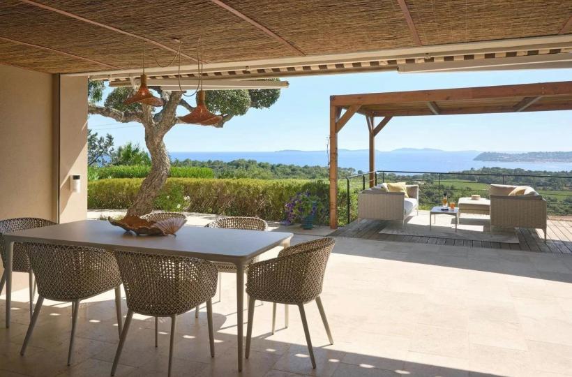 Nestled in the heart of one of the most sought-after addresses in La Croix-Valmer, this fully renovated property, using carefully selected high-end materials, offers an harmonious view on the sea, the hills, the vineyards, and the Golden Islands.