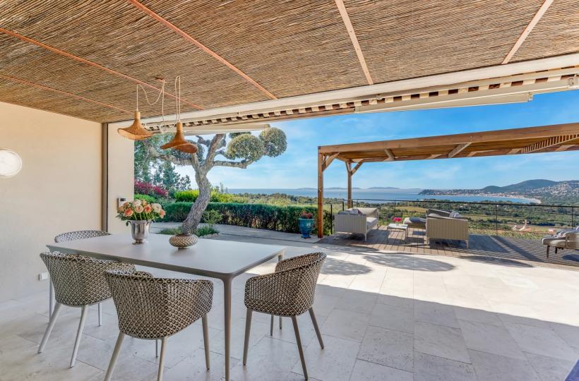 In the heart of one of the most sought-after addresses in La Croix-Valmer, this fully renovated property, using carefully selected high-end materials, offers an harmonious view on the sea, the hills, the vineyards, and the Golden Islands.