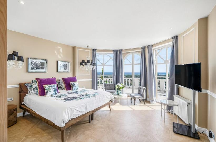 An elegant staircase leads to the entrance hall on the upper floor, which serves the bedrooms, including two magnificent master suites opening onto a vast south-facing terrace.