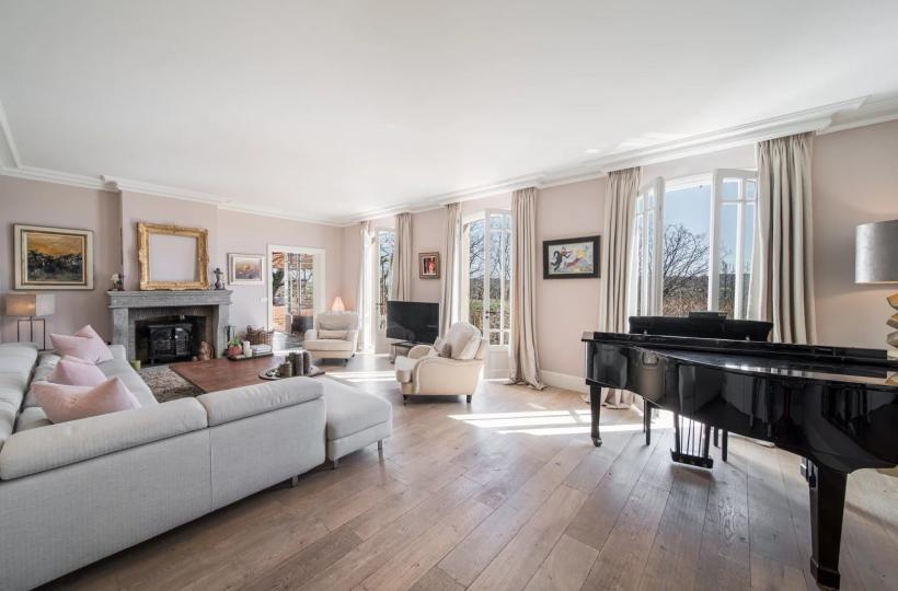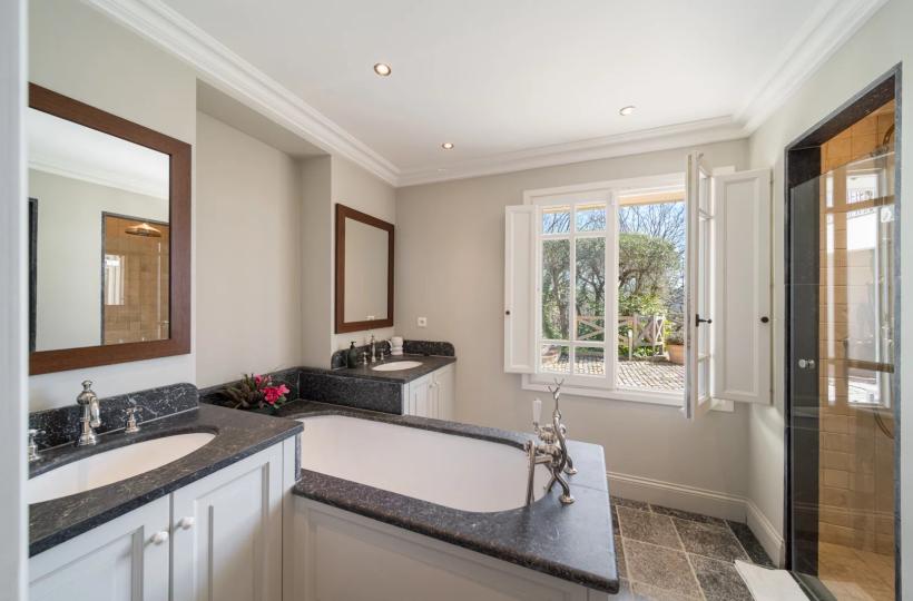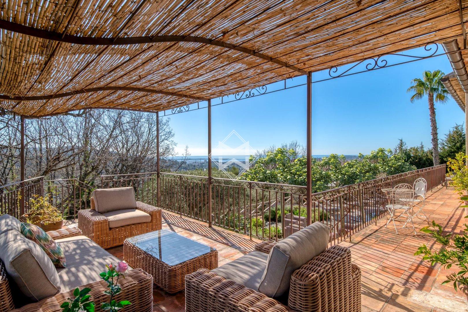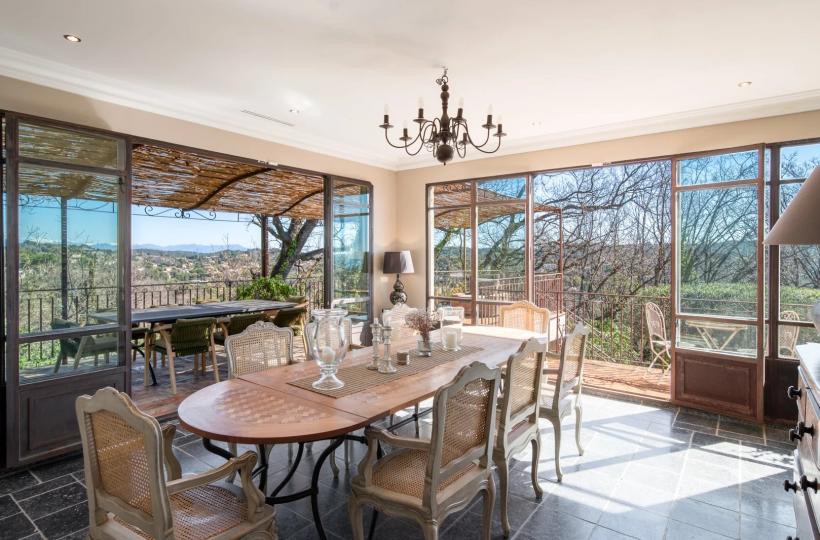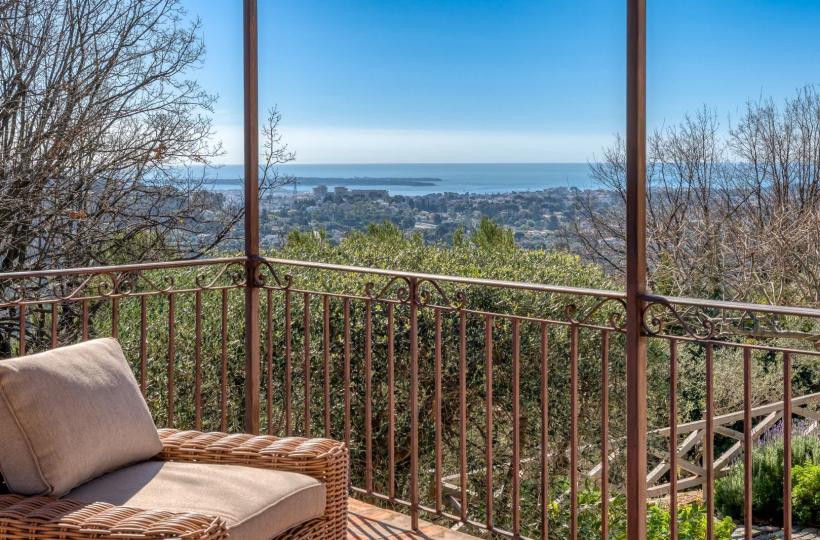 At the gateway to the old village of Mougins, this magnificent property of approximately 360 sqm, built over two levels, offers a rare living environment combining generous volumes, comfort and spectacular views over the bay of Cannes, the Alps and the village bell tower.