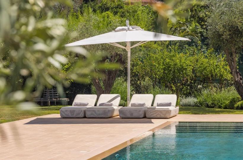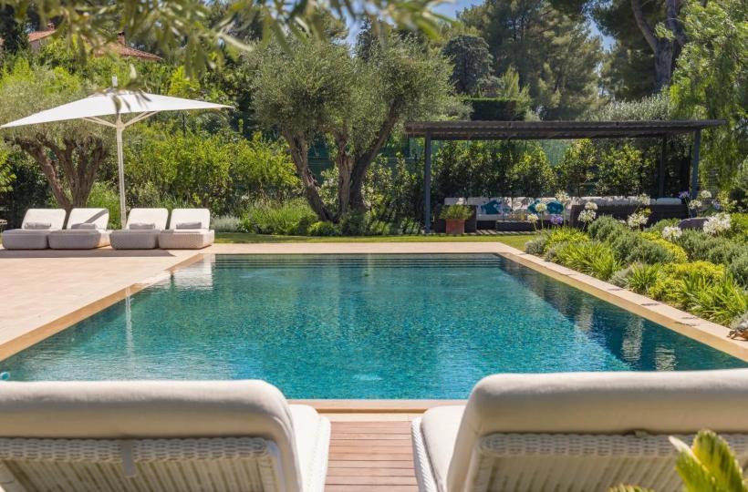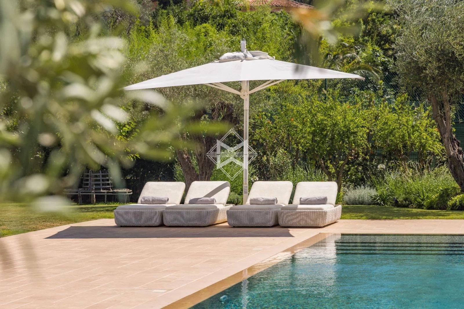 Nestled in the heart of an entirely flat plot of land of almost 3,200 sqm, the property designed almost on one level will offer you a beautiful living space opening onto a magnificent garden planted with olive and citrus trees giving way to a large terrace and its summer lounge with pergola next to its heated swimming pool.