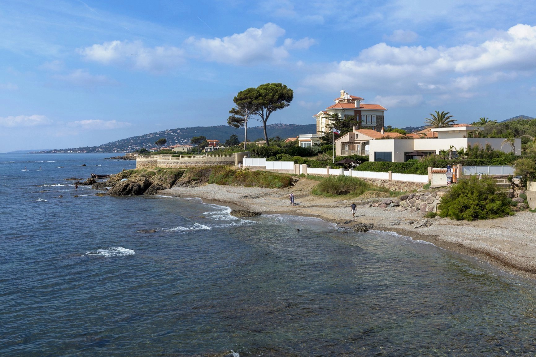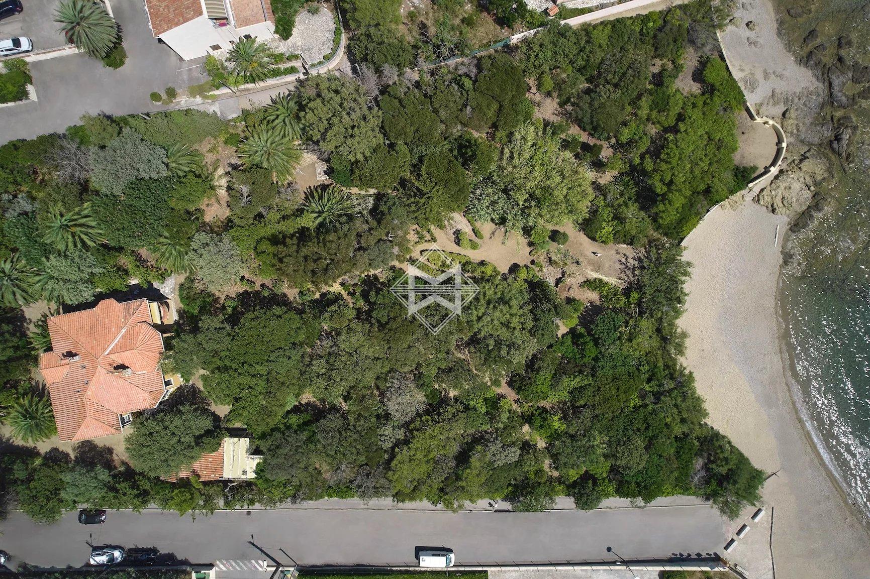 Between Cannes et Saint-Tropez, this property from the early 20th century occupies a vast wooded land of 5,696 square meters, situated right by the sea with private access to the beach.