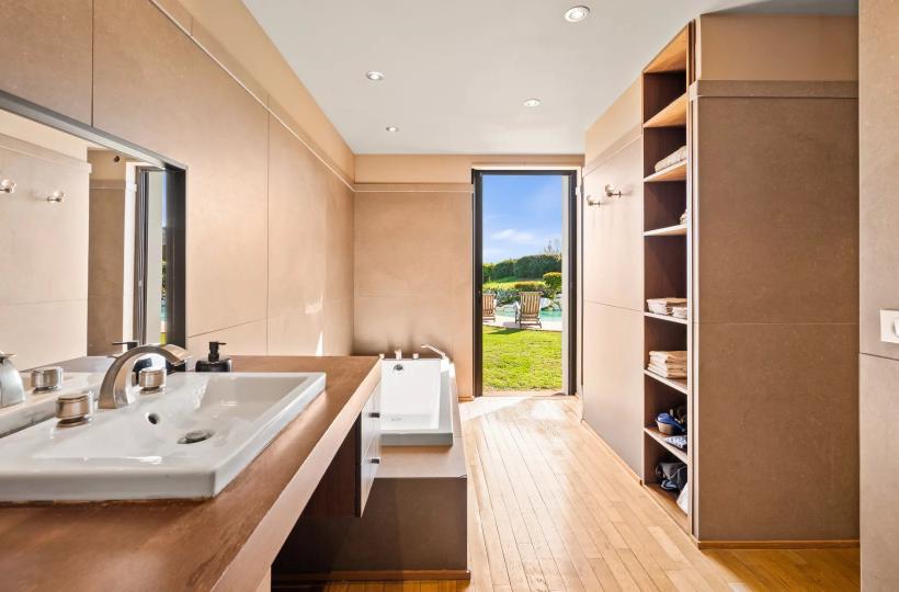 The ground floor sleeping area comprises two bedrooms, as well as a magnificent master suite with sea view, large dressing room and full bathroom.
